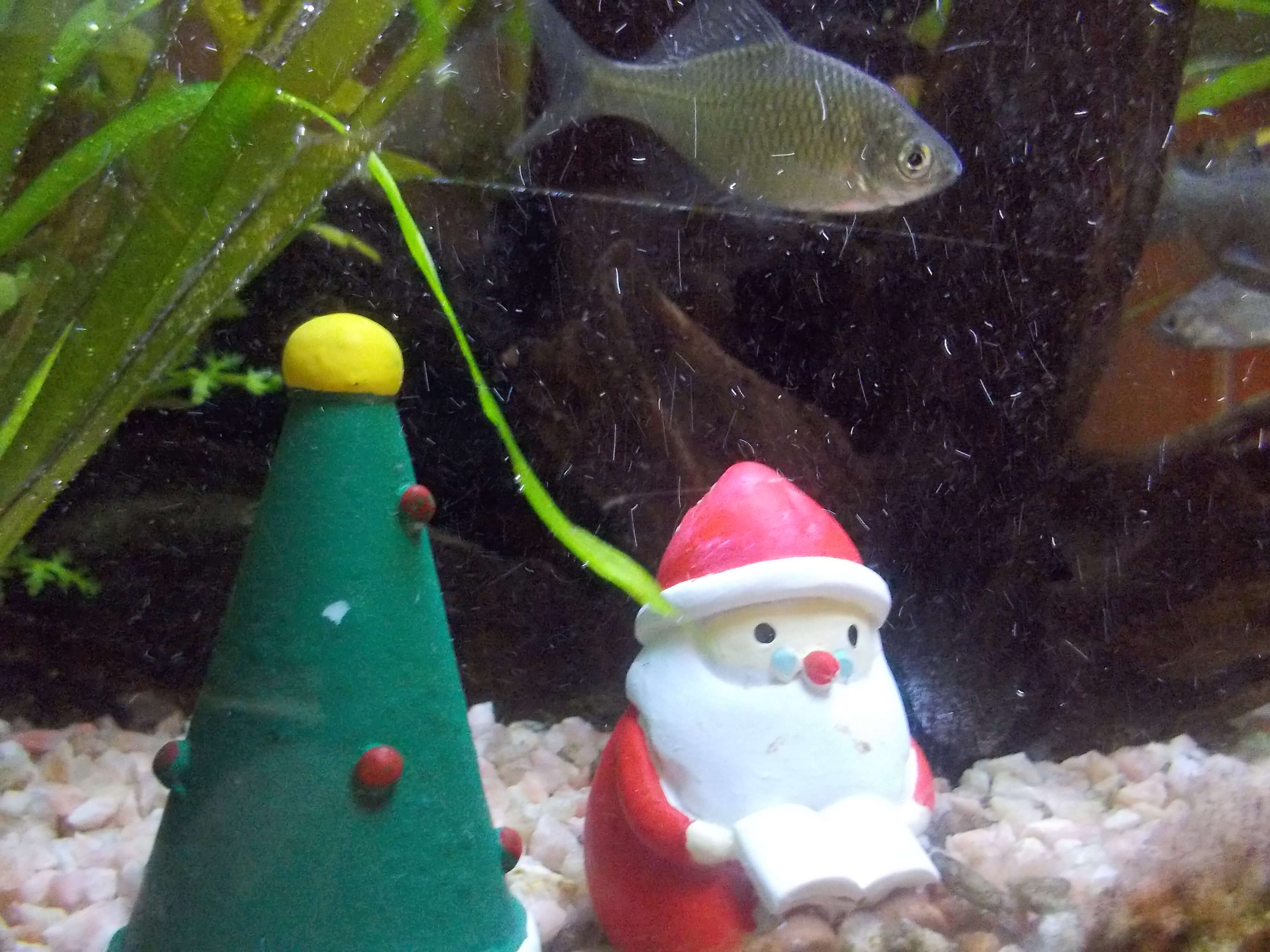 ピノス玄関の水槽に今年もサンタさんが来てくれました。