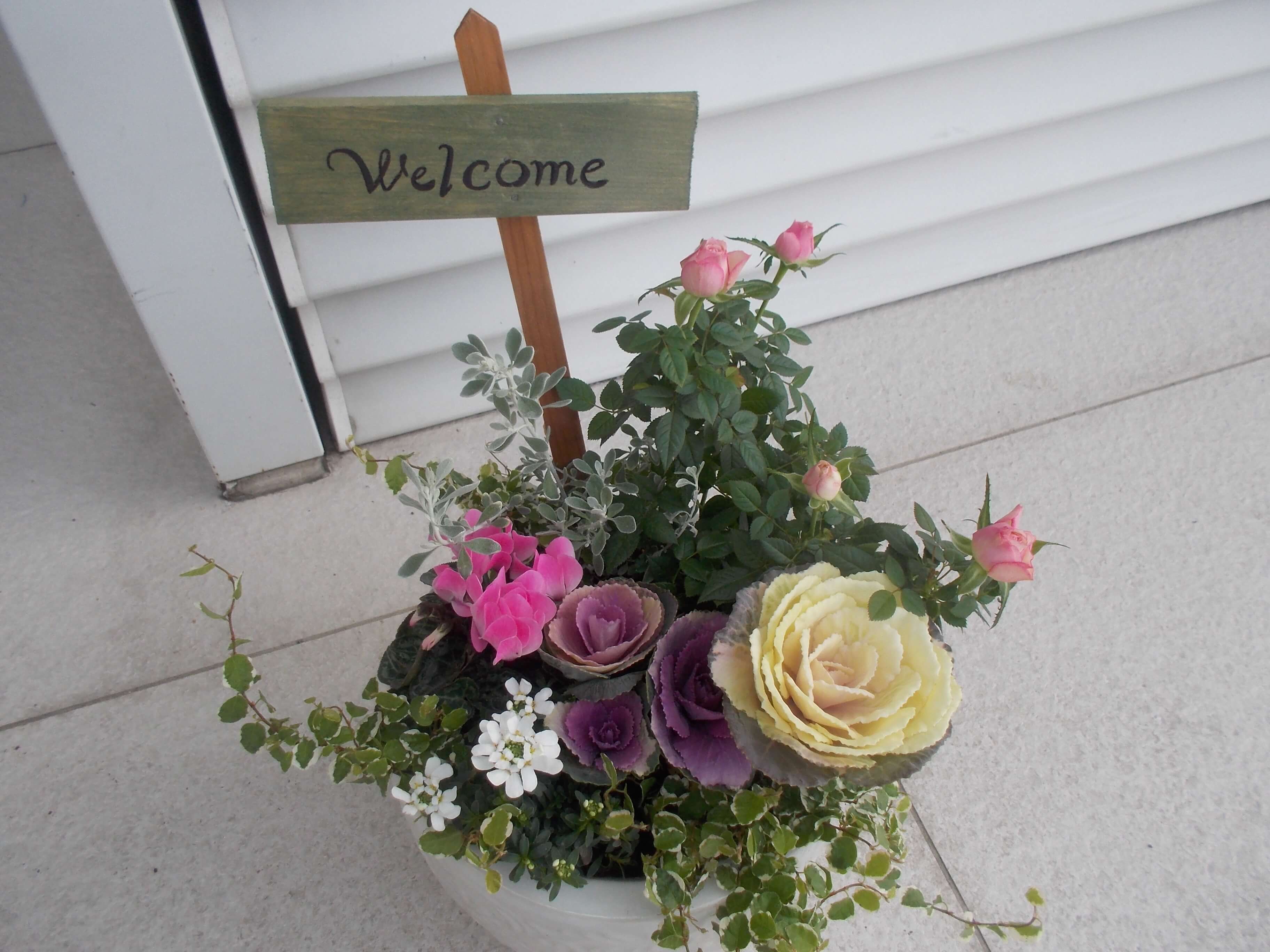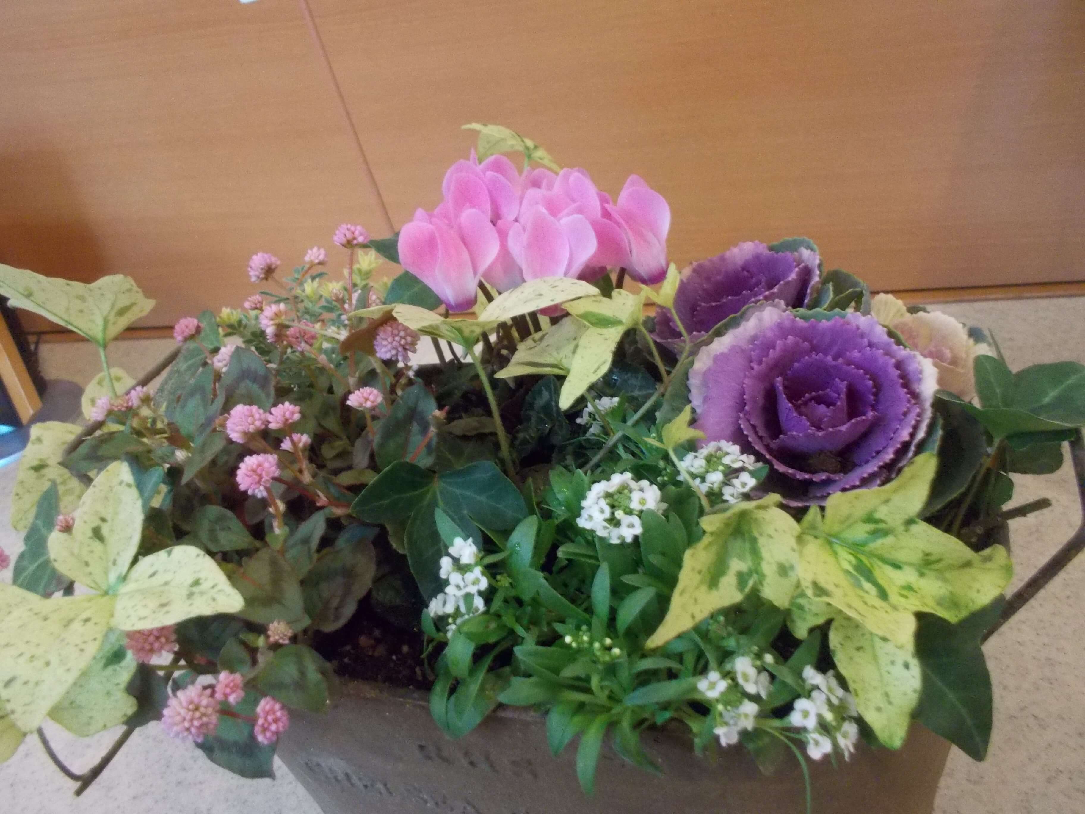 私は、背の高いのと小さなはぼたんと、色んな花を寄せ植えてみました。