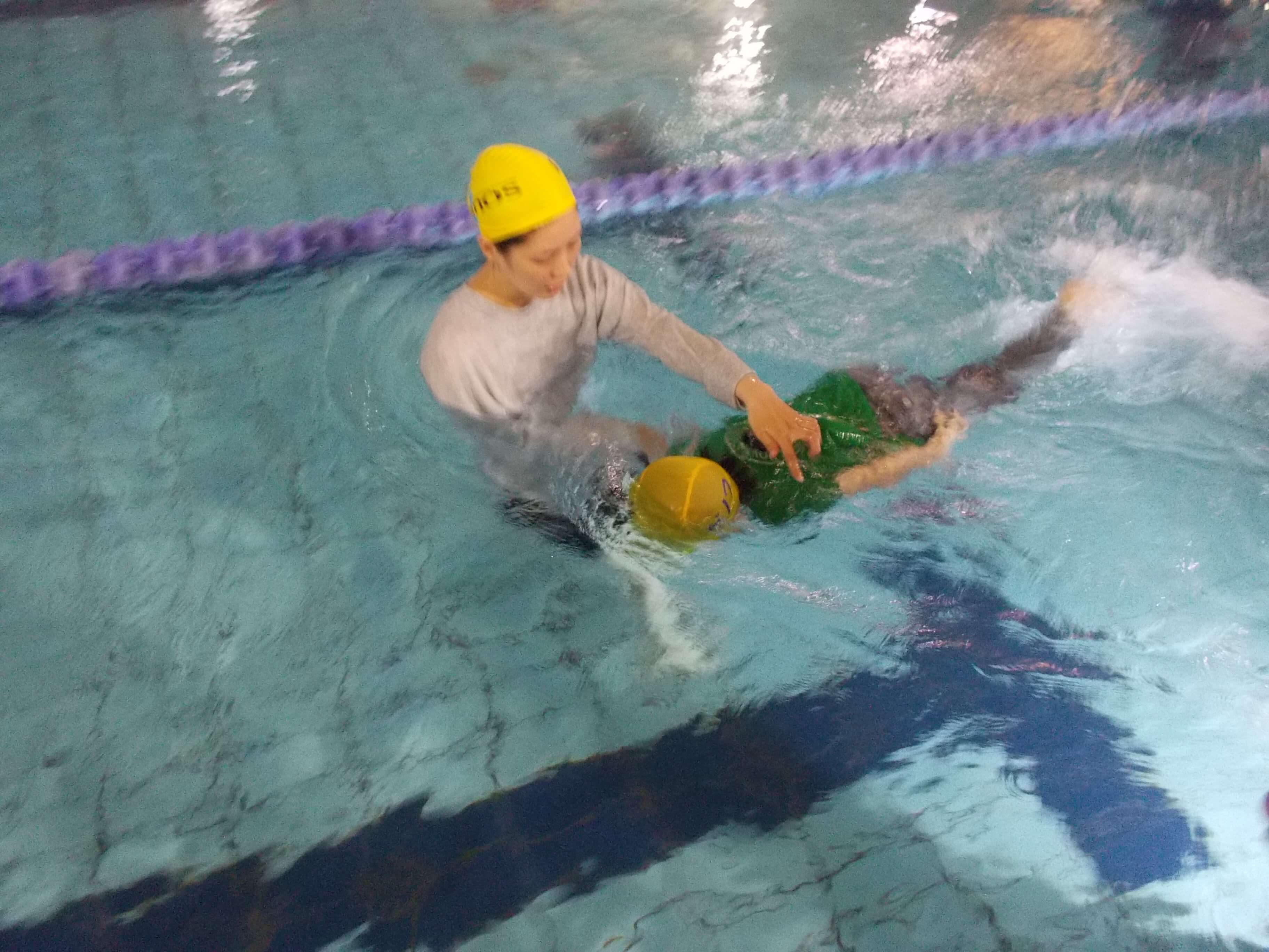 水辺に近づく夏になる前に、ピノススイミングスクールは、水難事故に合わないよう、この時期に毎年、安全水泳レッスンを実施しています。