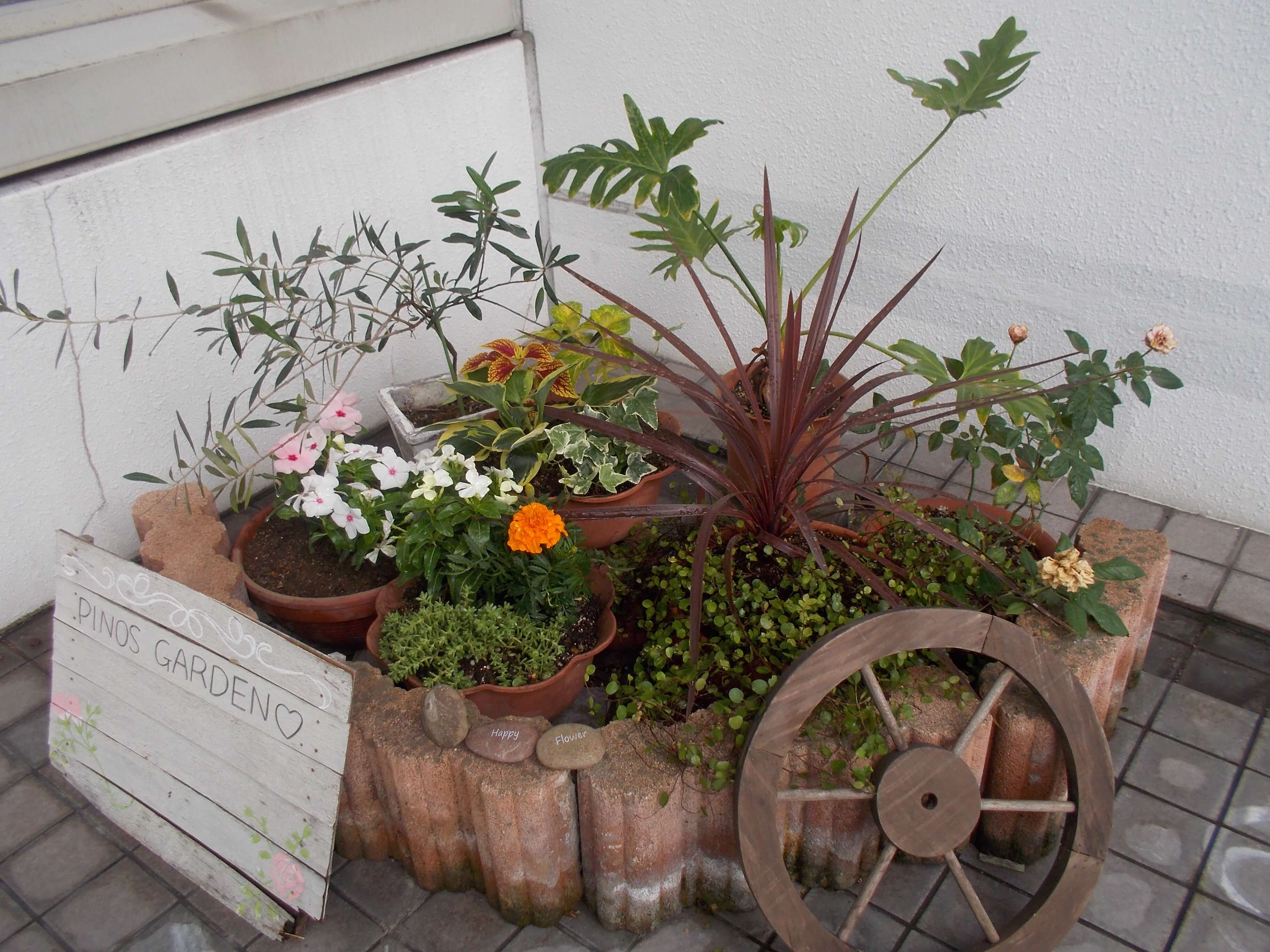 今日はまた新しい花を植えて、メダカの水を替えました。