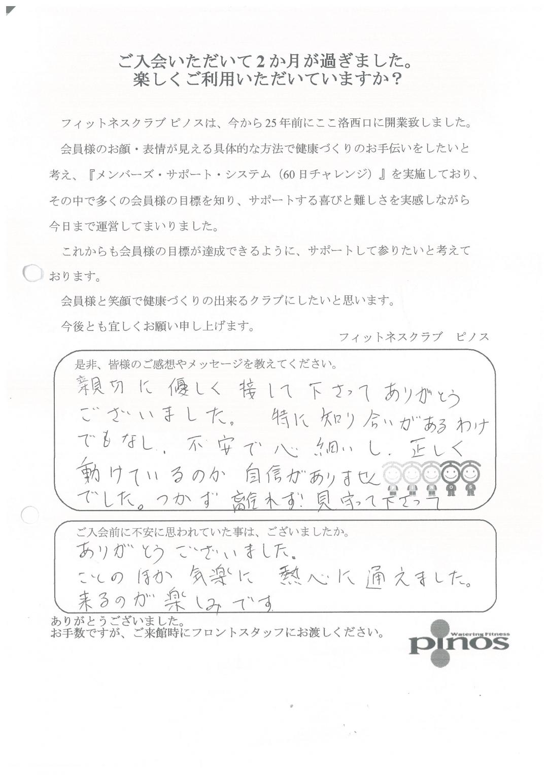 ピノス洛西口では、ご入会後2ヶ月経過した方にアンケートのご協力をお願いしております。